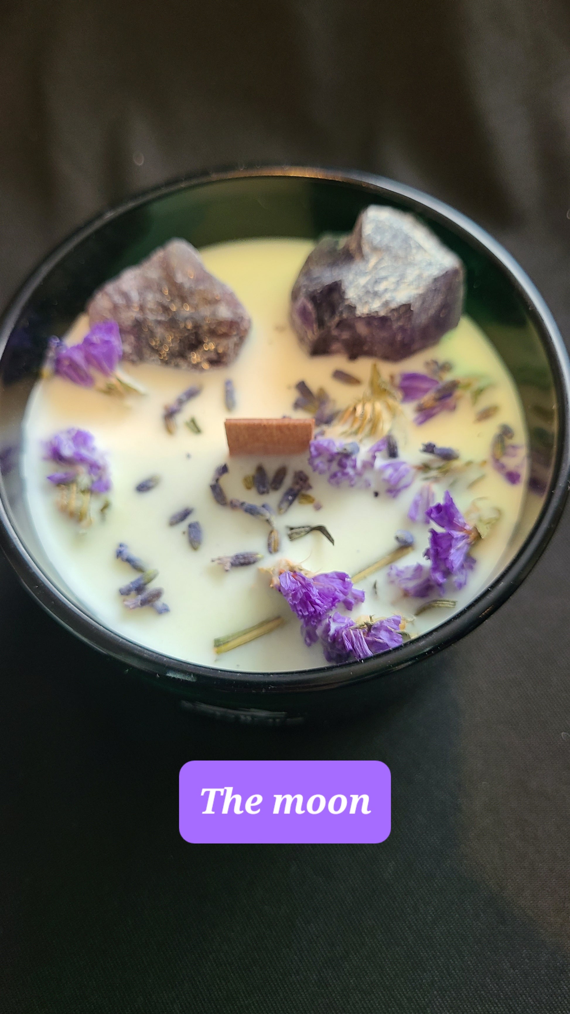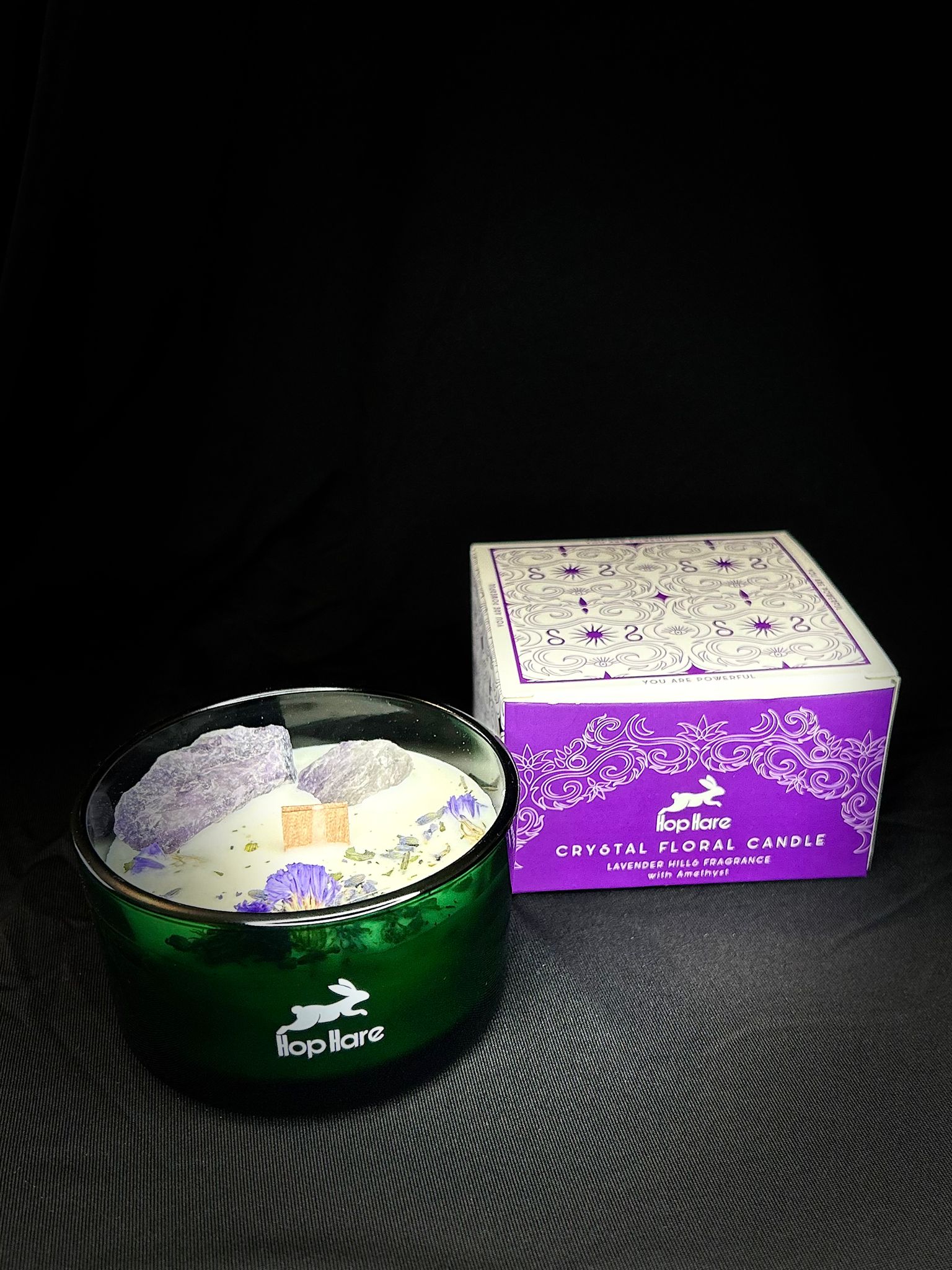 Step into the mystical world with Hop Hare Crystal Magic Flower Candle - The Moon, crafted with Amethyst gemstone and lavender flowers.