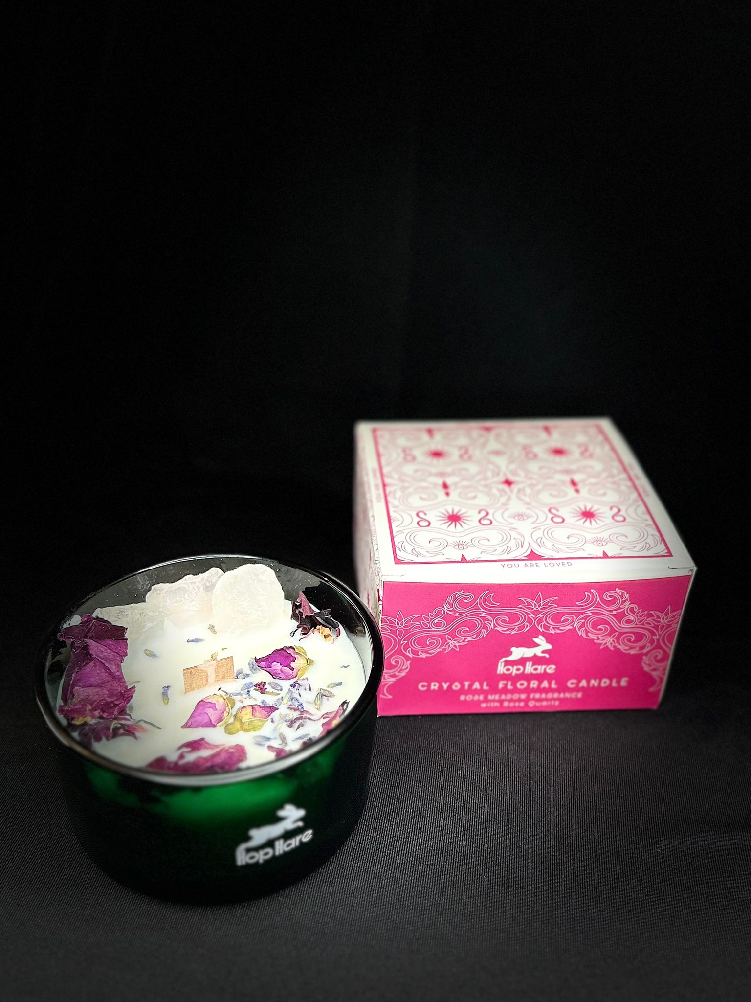 Indulge in the enchanting allure of Hop Hare Crystal Magic Flower Candle - The Lovers, a fusion of Rose quartz and delicate Rose Flowers.